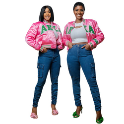 女式粉色飞行员夹克100% 聚酯材料轻质全袖定制标志印刷来样定做服务来样定做